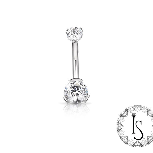Titanium 3 Prong-set Round Faceted Gem Curved Barbell.Prong-Set Gem Curved Barbells come with a 4mm or 6mm fixed gem. Made with implant grade titanium.